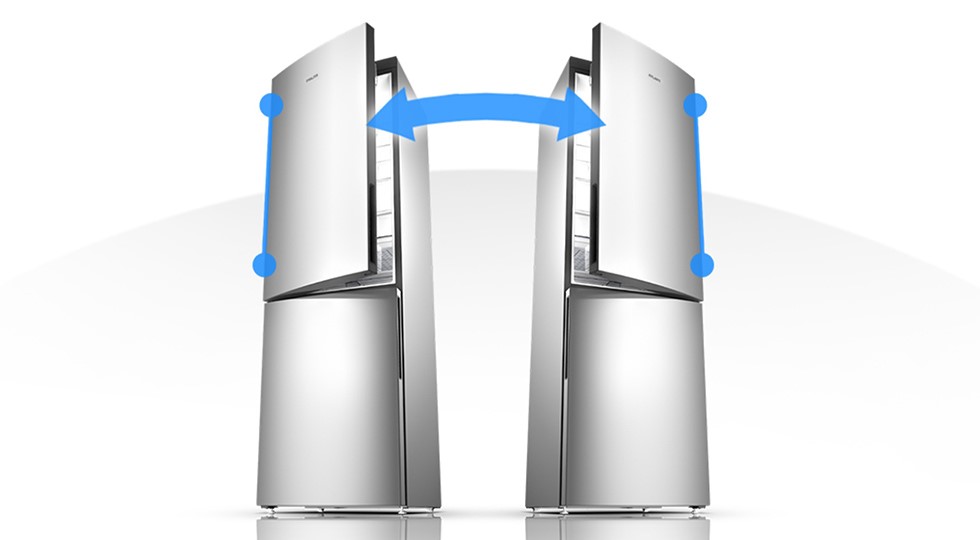 Холодильник, имеющий функцию перенавески дверей, всегда будет приоритетным в выборе любого владельца. В перспективе такой холодильник можно поставить в любом месте на кухне, в случае если вы решите сделать перестановку мебели. Плюс не будем забывать, что есть потребители-левши, для которых правая сторона открывания дверей не удобна физически.
